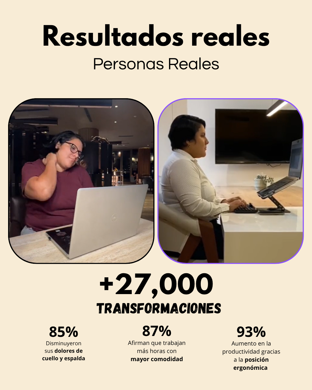 ¿Horas frente a la laptop? Este soporte está diseñado para profesionales remotos, nómadas digitales, streamers y oficinistas que buscan ergonomía y confort real. No más posturas incómodas ni dolores después de trabajar todo el día.